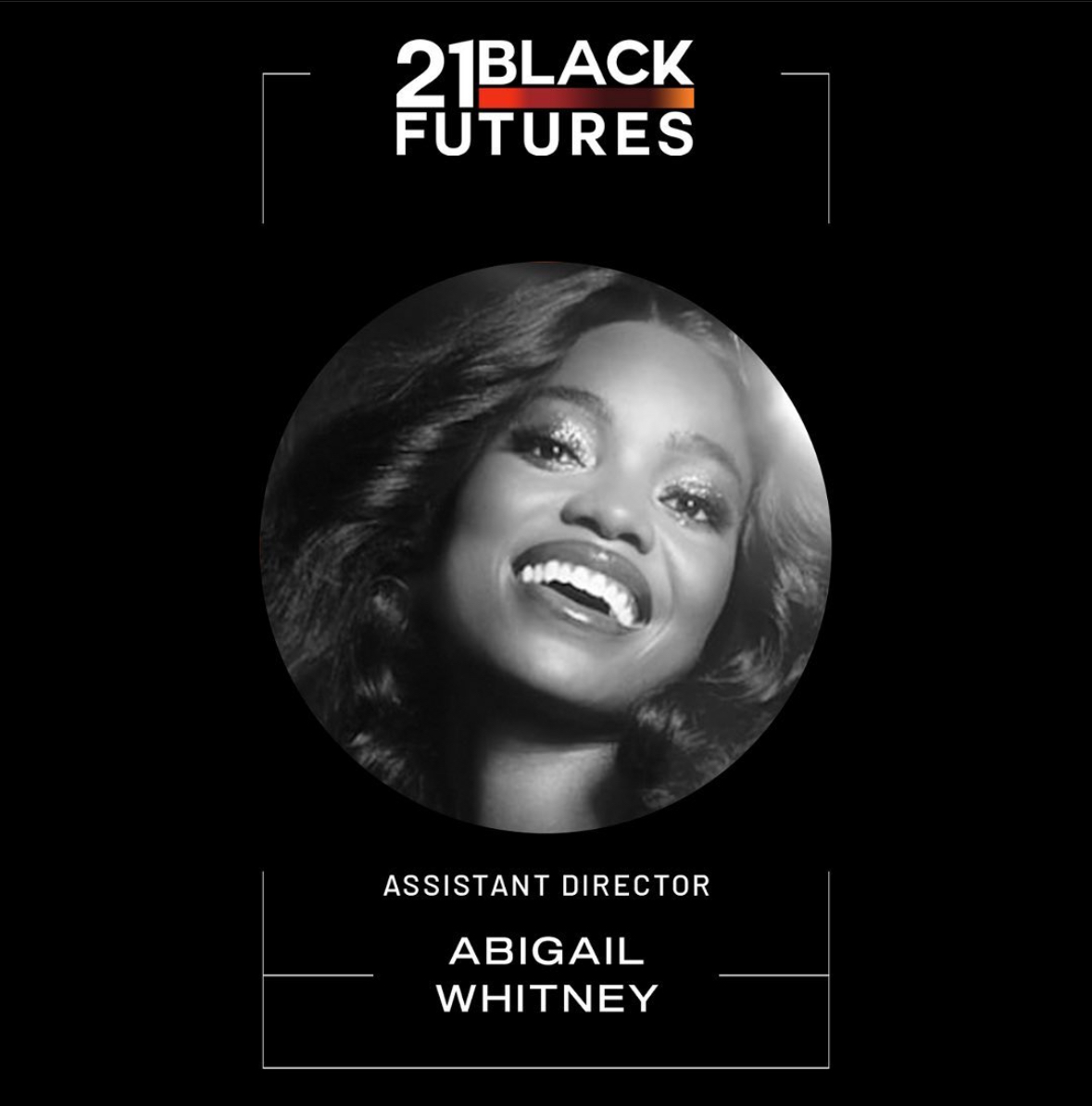 Abigail Whitney was an assistant film director to Jamie Robinson, Ngozi Paul, Sarah Waisvisz and Mike Payette on four out of 21 of Obsidian Theatre Company's 21 Black Futures short films. This anthology series, which aired on CBC Gem, received the 2022 Canadian Screen Awards for Best Web Program or Series, Fiction.